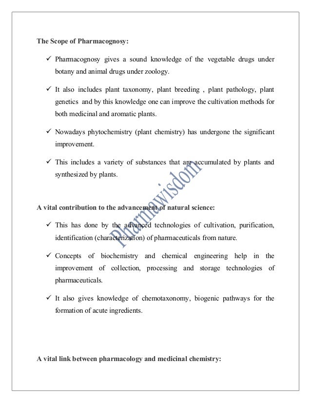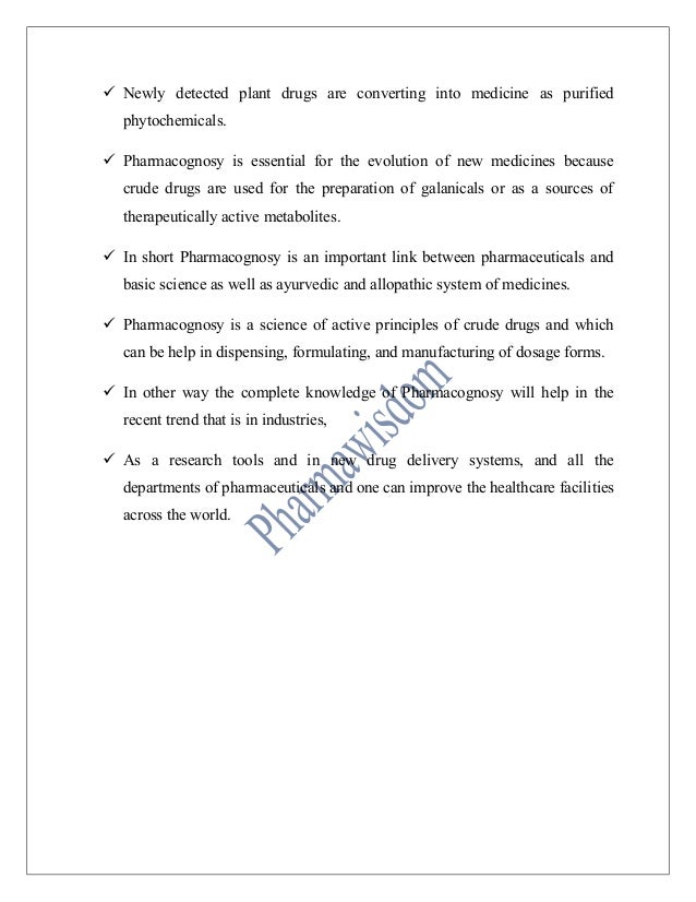 In short Pharmacognosy is an important link between pharmaceuticals and